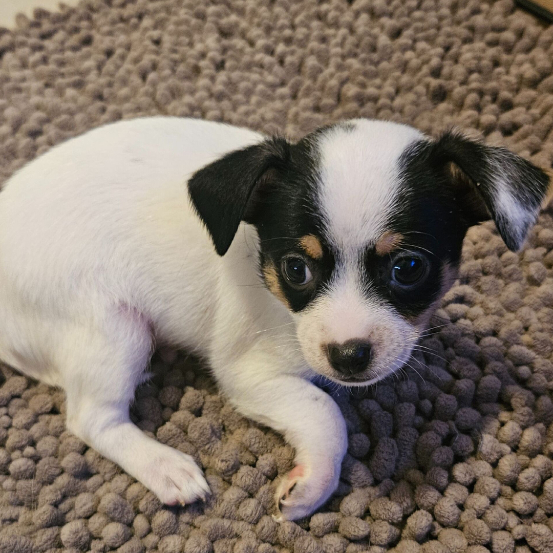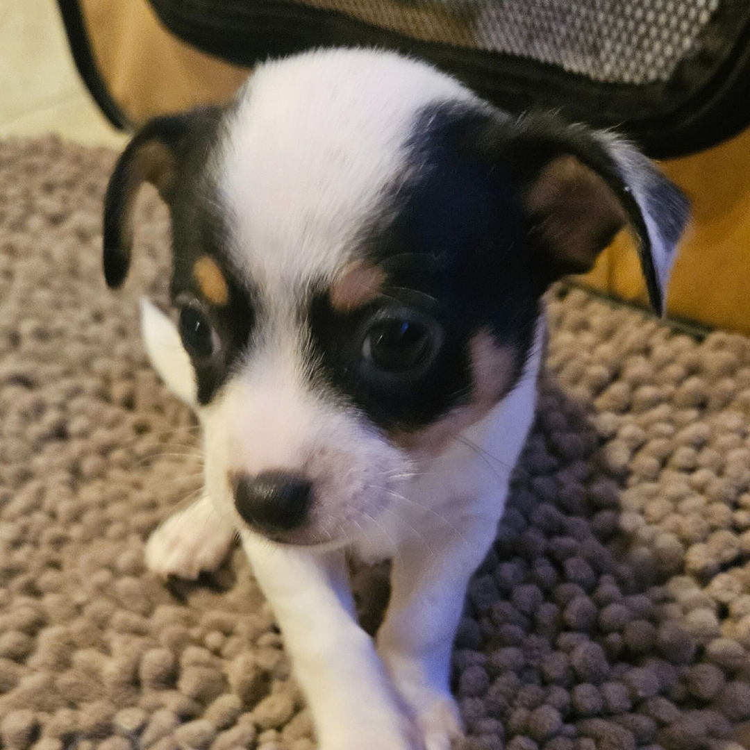 Hi, I'm Bandito! I'm a 6-week-old male Chihuahua with a beautiful black & white coat, born on June 11, which makes me a Gemini sign. When I reach my adult size, I should weigh between 2–3 lbs. I'm CKC registered. I will be your faithful friend and the love of your life.