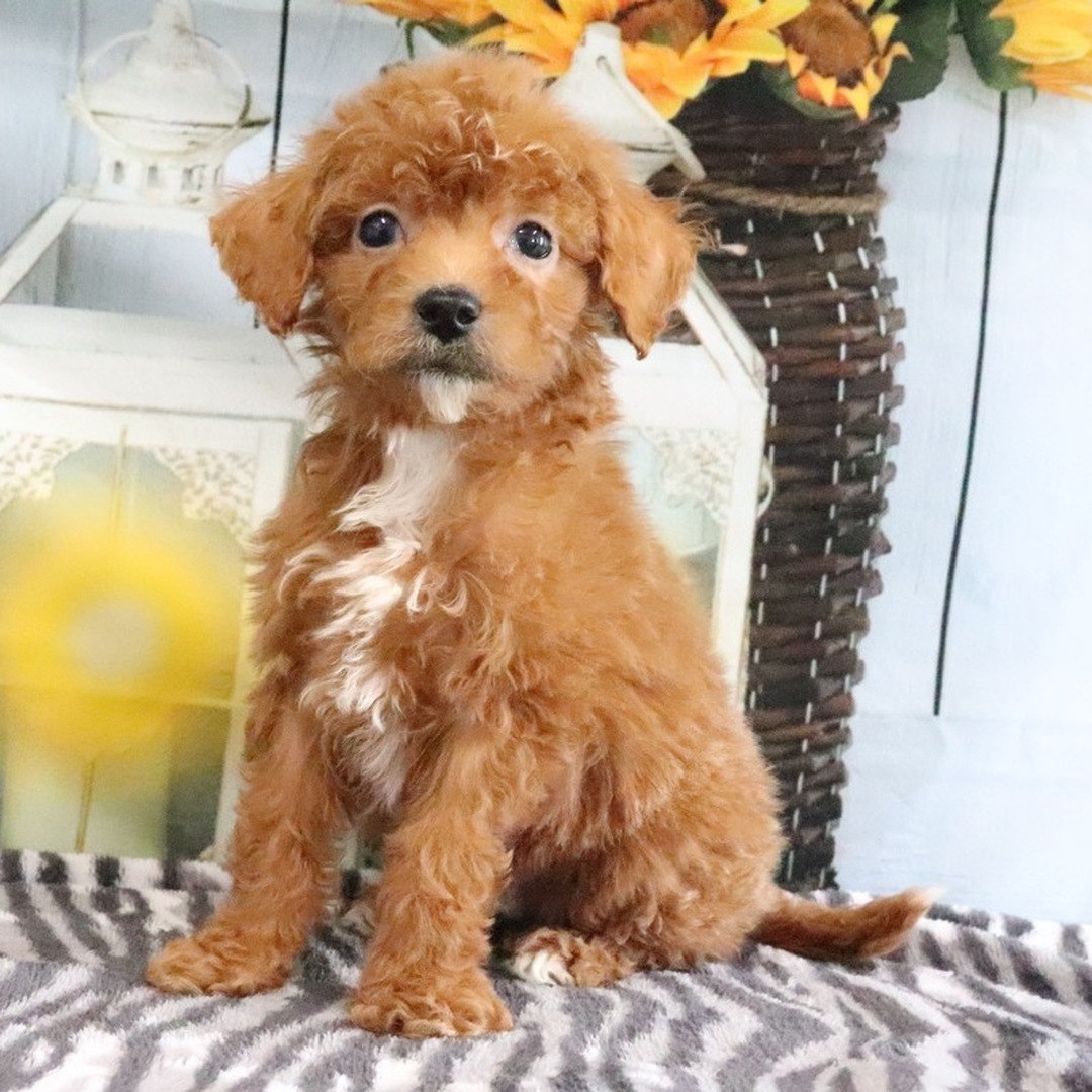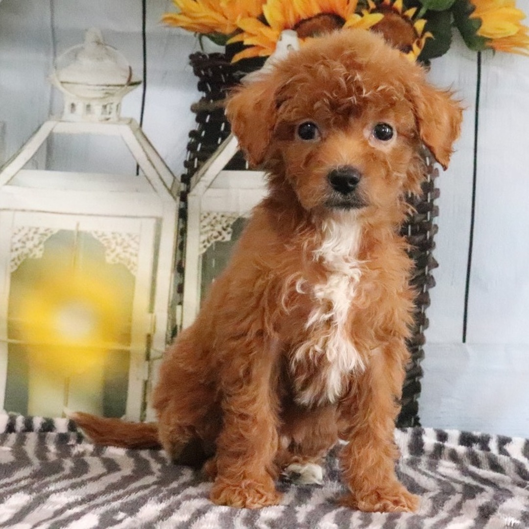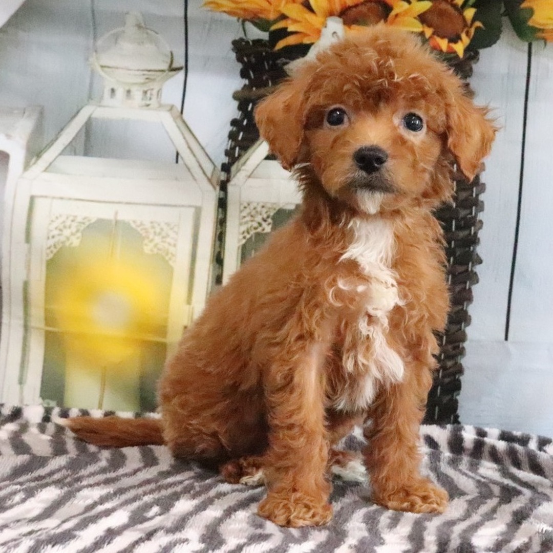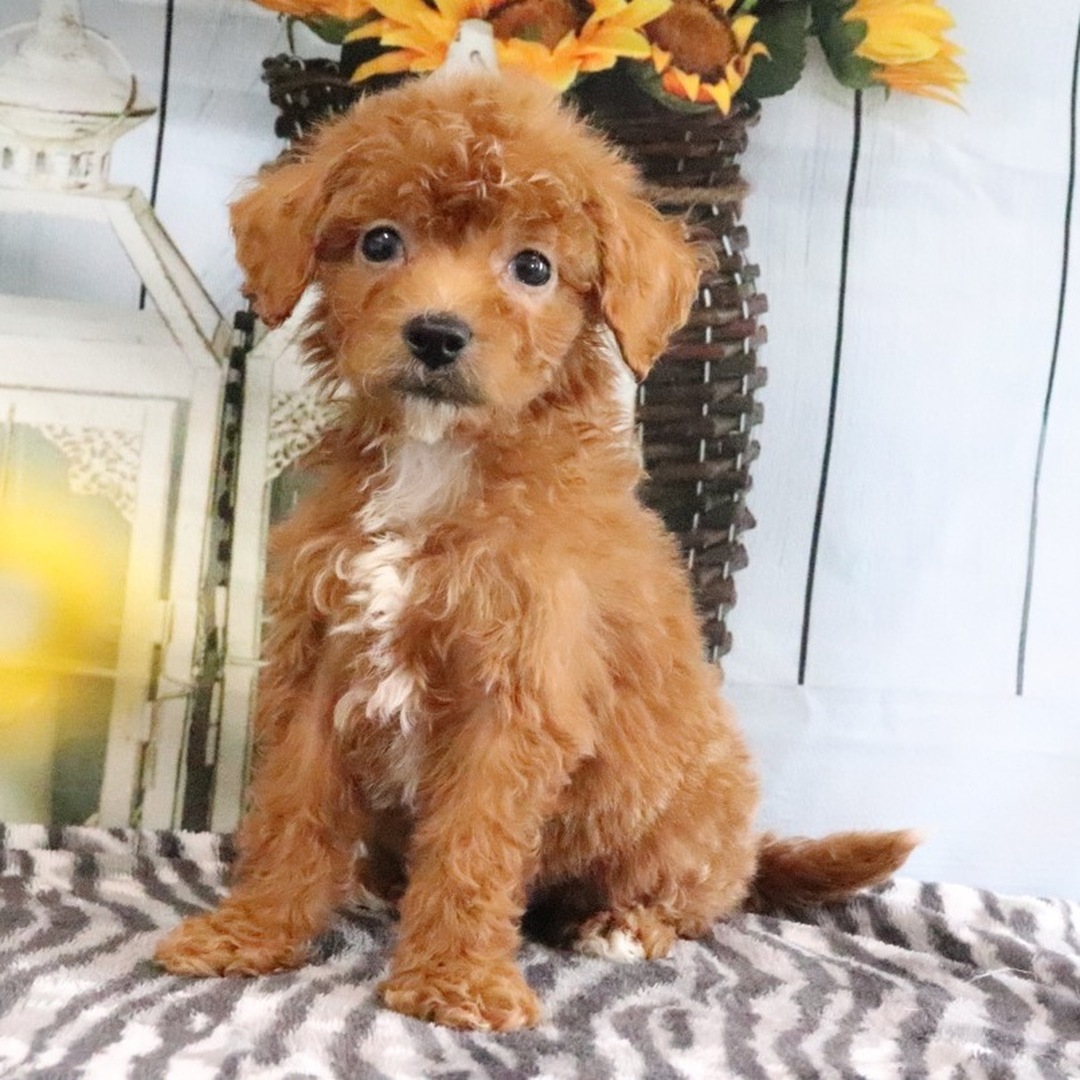 I'm an 8-week-old male Goldendoodle. My dad is a Poodle and my mom is a Goldendoodle. I have a beautiful red coat, and I was born on September 16, which makes me a Virgo pup. I am ready now to plan my trip to my forever family. Ladies and gentlemen, when it comes to picking a puppy, there is no other choice than me.