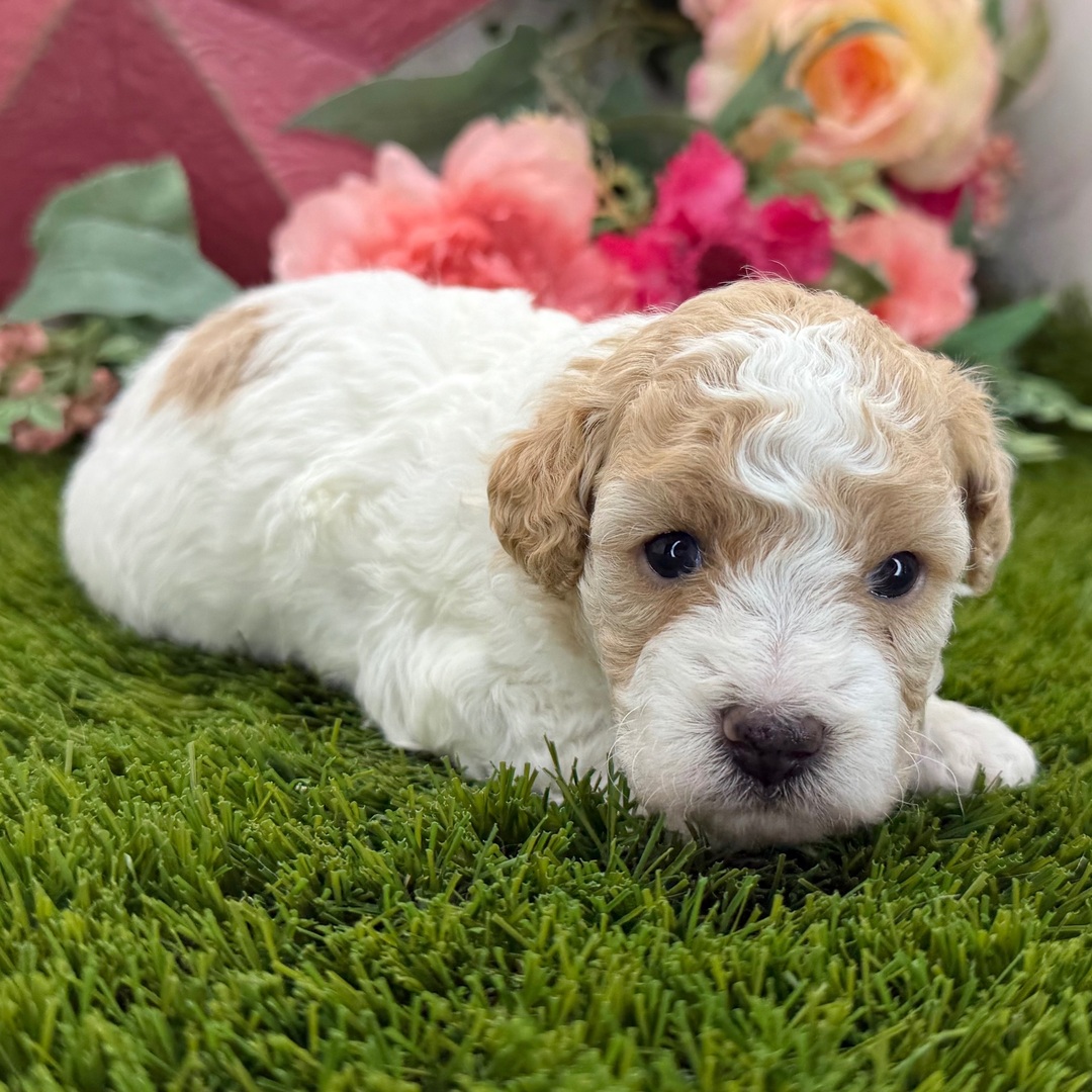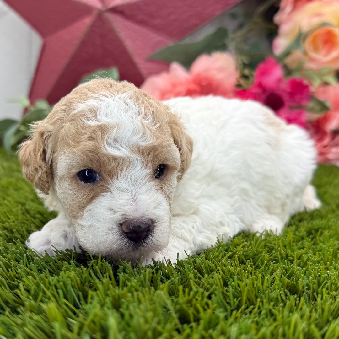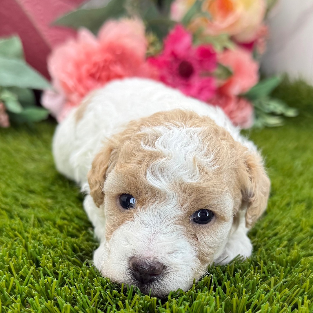 Hi, I'm Elsa! I'm a 3-week-old female Poodle with a beautiful apricot & white coat, born on June 27, which makes me a Cancer sign. I'm AKC registered. Not only am I cute, but I also have a great personality too. Before arriving home, I will be up to date on my vaccinations and be pre-spoiled.