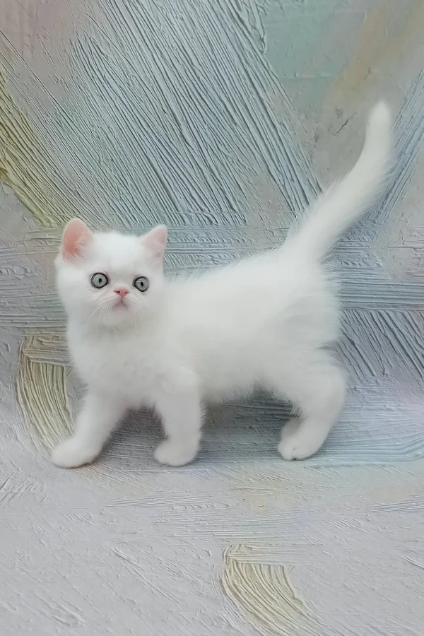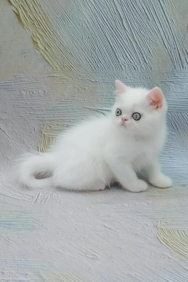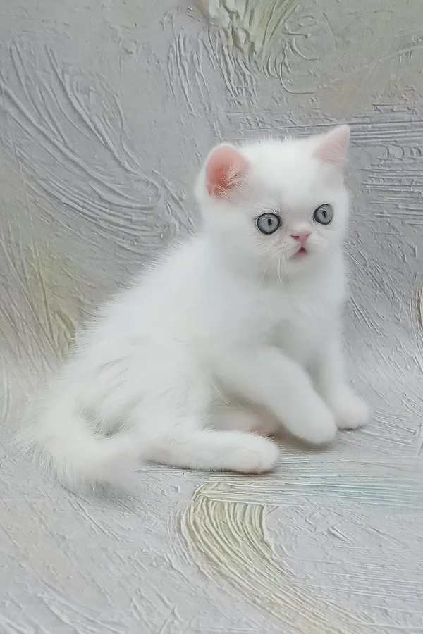 I’m Elton—and if you’ve been dreaming of a showstopper with a snowy-white coat and eyes that mesmerize, your search might just be over. I’m charming, soulful, and ready to steal your heart the moment we meet. I’m an 8 weeks old male Exotic Shorthair kitten with a striking white coat that feels like velvet and piercing blue eyes that make people stop and stare. I have a thick, plush coat you’ll love to run your fingers through, and I’m already showing off my big frame and gentle presence. With rare bloodlines and an excellent breed type, I’m not just adorable—I’m a refined, one-of-a-kind feline ready to bring grace and sweetness into your everyday life.