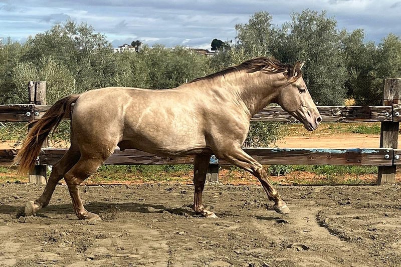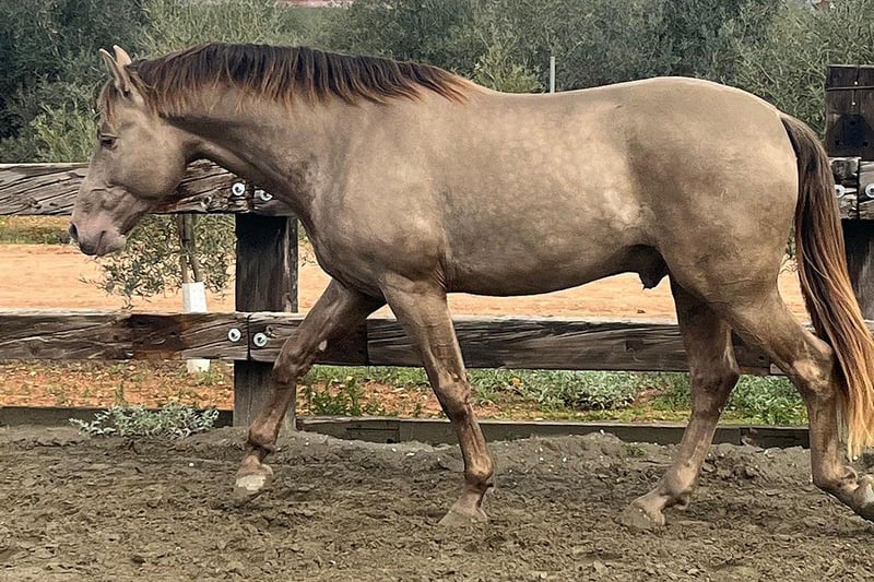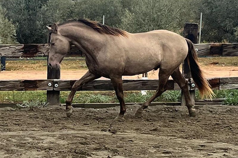We are pleased to present Estanquero(Estan), a striking 2021 Pura Raza Española (PRE) licensed stallion offered for sale. This rare Isabelo Negro stallion stands out not only for his unique and highly sought-after coat colour, but also for his outstanding conformation, pedigree, and breeding potential.