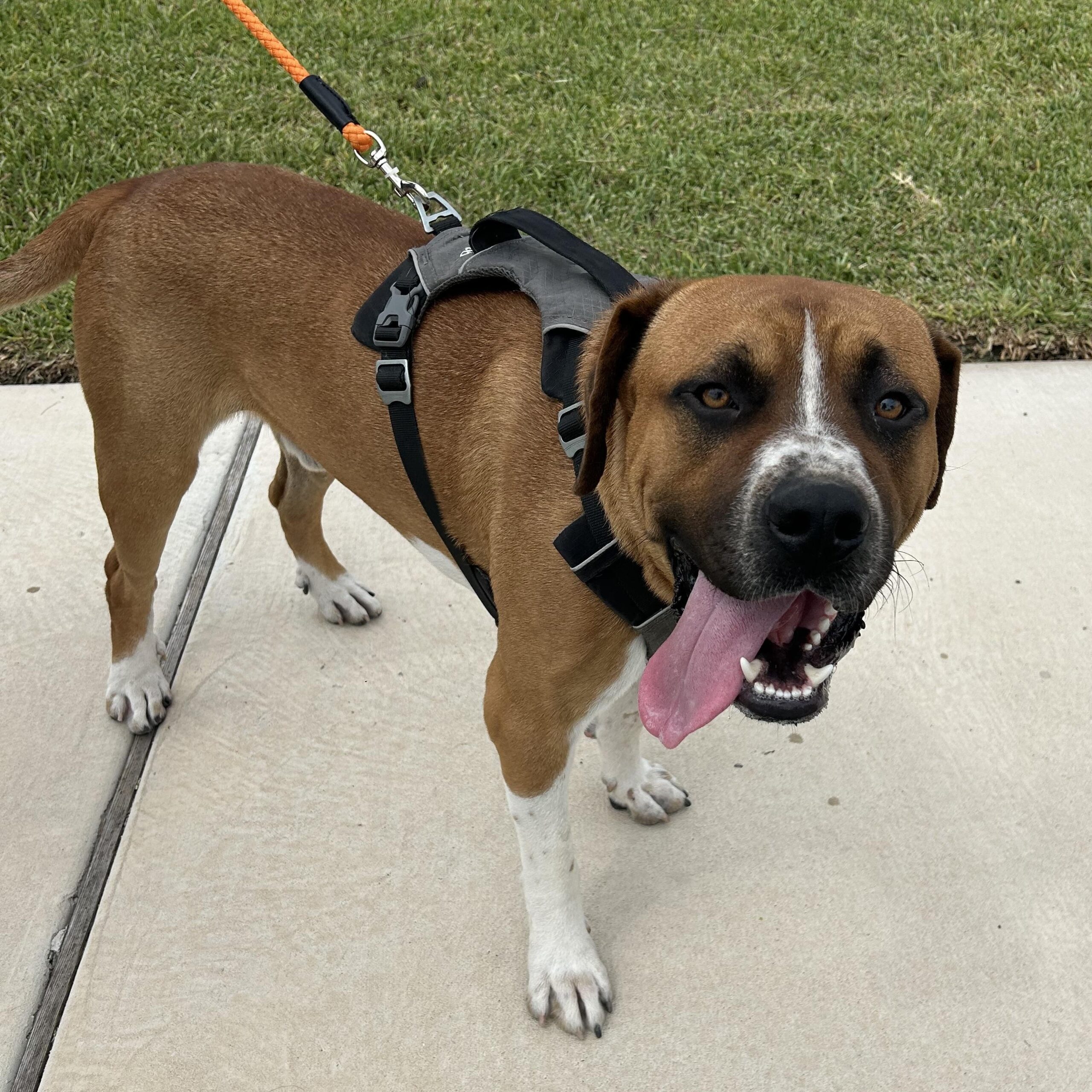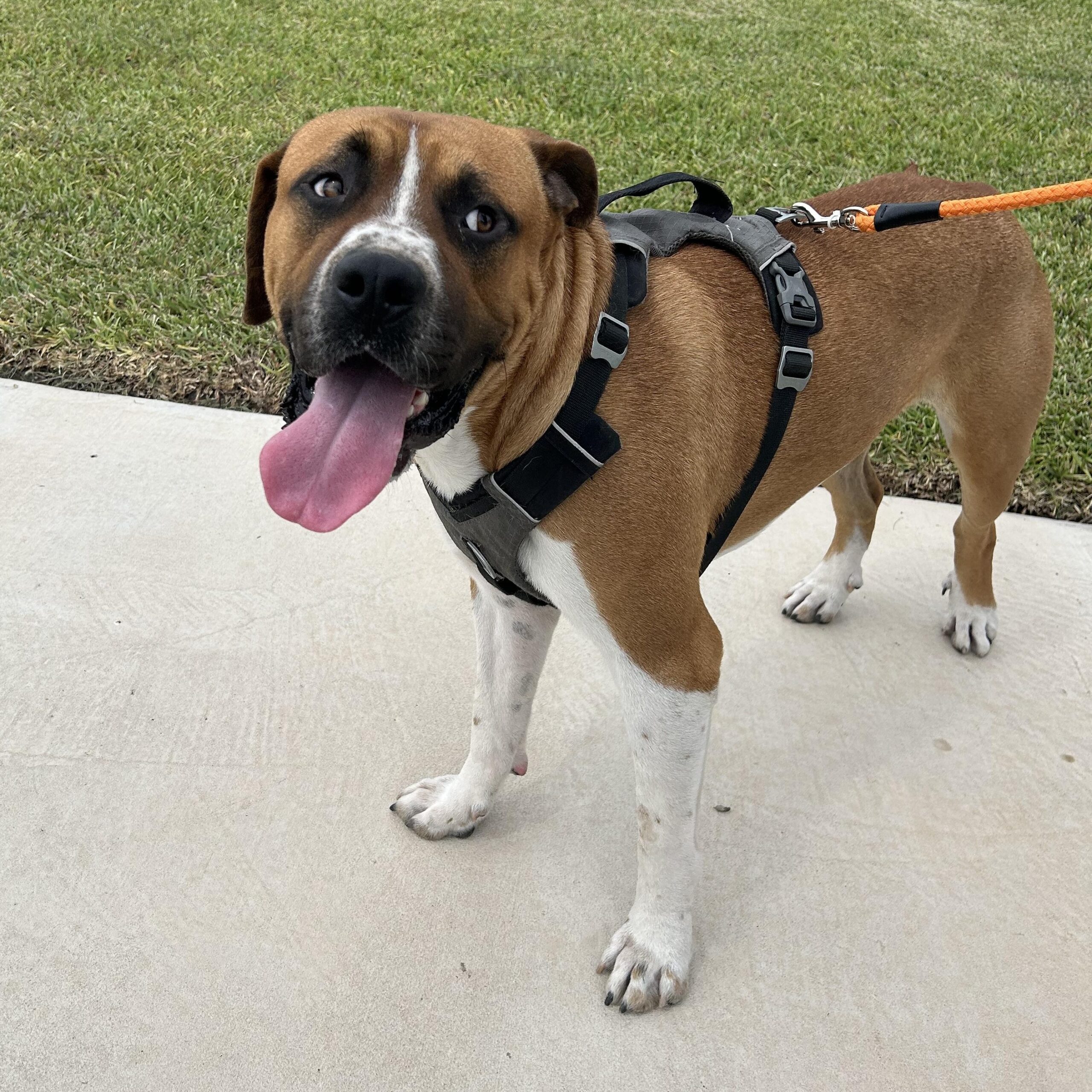 This calm, loving boy thrives on companionship. He’s affectionate, loyal and friendly, always ready to show love and play when it’s time. Though strong and large, Gordon carries himself with a soft, easy-going temperament — the kind of dog who can be a protector and a cuddle buddy.