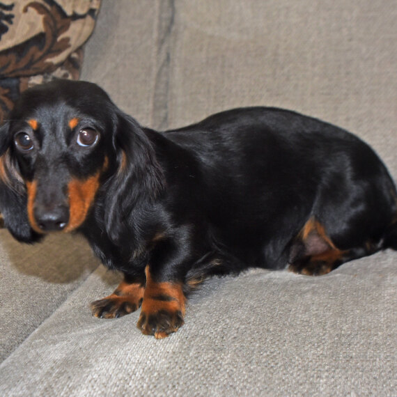 I'm a 4-week-old male Dachshund with a beautiful chocolate & tan coat, born on October 13, which makes me a Libra sign. I'll be ready to go home to my forever family after December 15, once I'm grown enough to leave my litter. I'm ICA registered. Everyone loves to pet me, and I don't mind at all! I can lay there for hours soaking up every bit of affection.