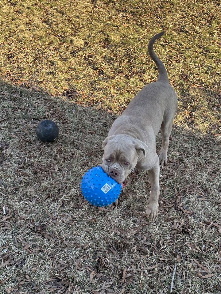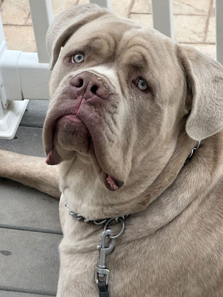 King is a big, calm Mastiff mix with a steady, friendly personality.