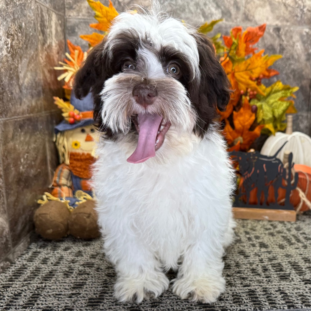 I'm an 18-week-old female Havanese with a beautiful chocolate coat, born on July 9, which makes me a Cancer pup. I am ready now to plan my trip to my forever family. Once I reach my adult size, I'm expected to weigh between 9–14 lbs. I'm AKC registered. I'm all set to fill your days with laughter and your nights with snuggles.