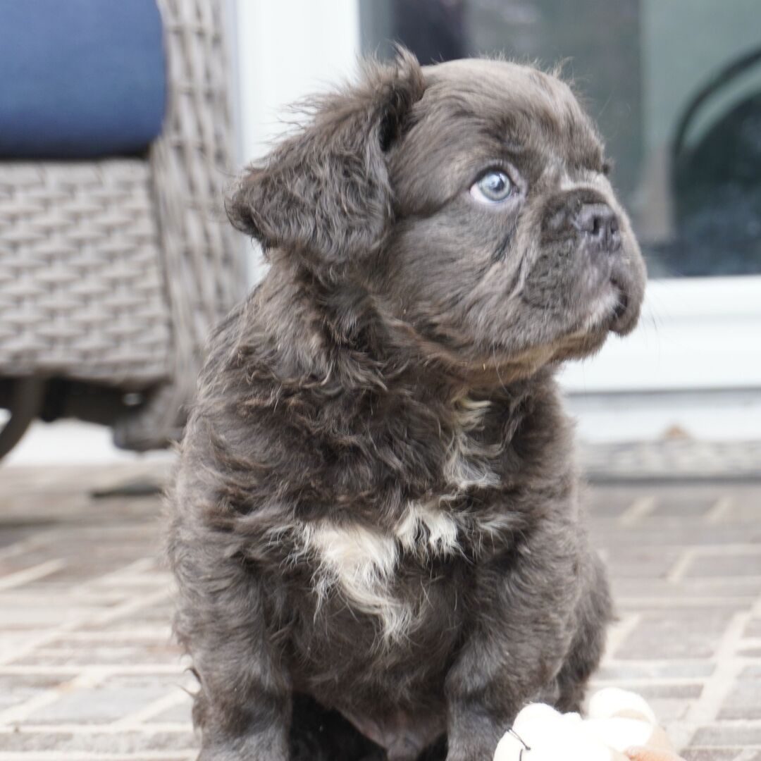 Hi, I'm Nolan! I'm a 12-week-old male French Bulldog with a beautiful blue coat, born on June 25, which makes me a Cancer pup. I am ready now to plan my trip to my forever family. Once I reach my adult size, I'm expected to weigh between 22–30 lbs. I'm AKC registered. My heart is as big as my paws are tiny, and I'm ready to love you.