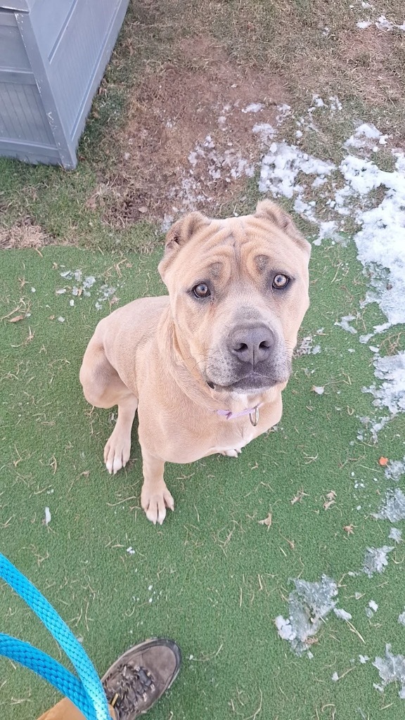 Mama (fka Hannah) is a beautiful, strong, and affectionate lady with a big heart. She walks well on a leash, knows her basic commands, and loves her people dearly — yet she retains a goofy, playful side that shows when she rolls over for belly rubs or plays with her toys.
