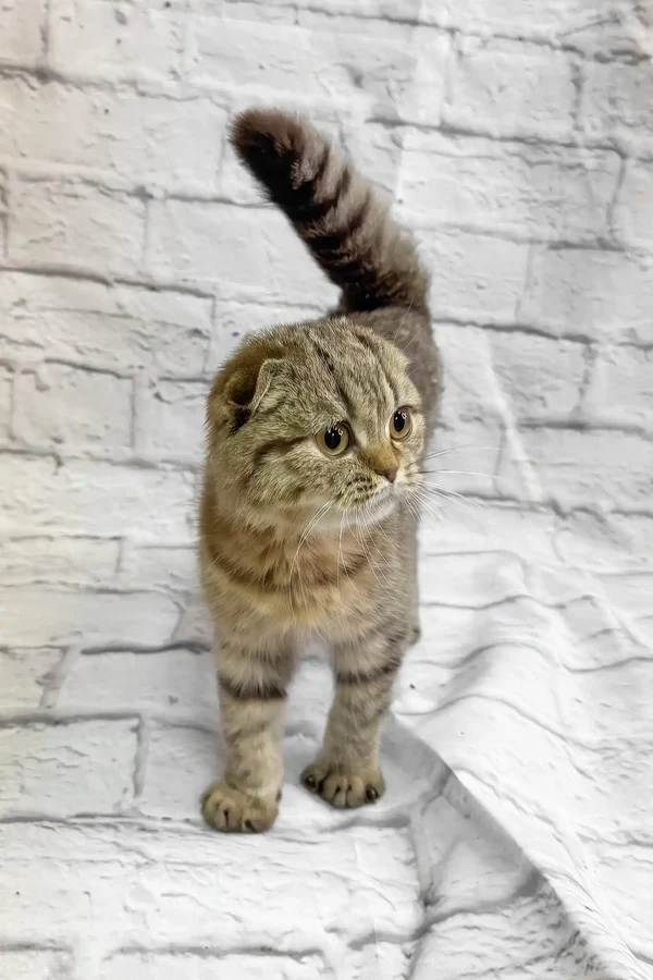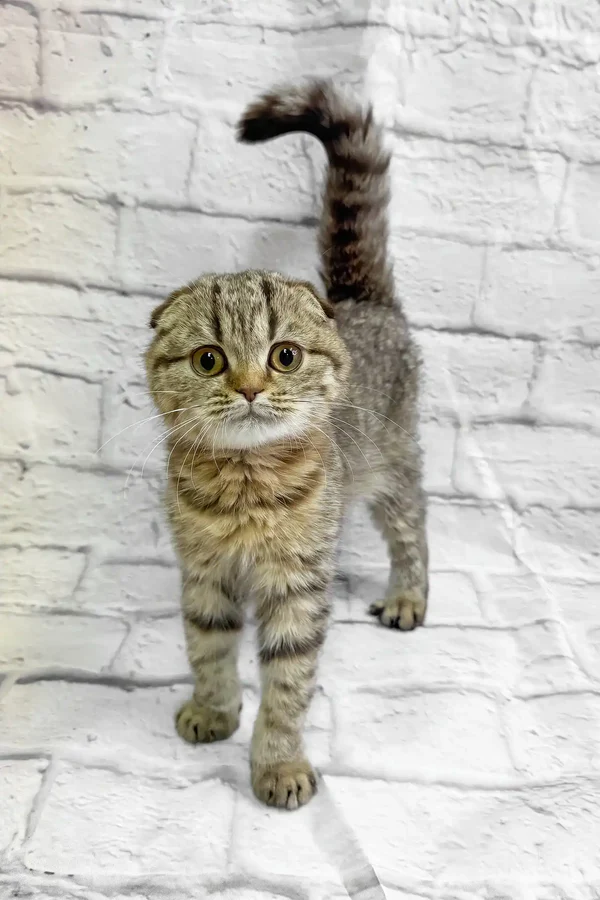 Hello, I’m Marfa, a charming 3 months old female Scottish fold kitten with a luxurious black golden ticked tabby coat that feels velvety soft to the touch. My golden eyes sparkle with curiosity and warmth, perfectly complementing my uniquely folded ears and compact, round face that make me truly unforgettable. I come from rare bloodlines and embody the best qualities of my breed—elegance, intelligence, and a gentle spirit. I’m more than just a pretty face; I’m ready to bring friendship, laughter, and comfort into your life.