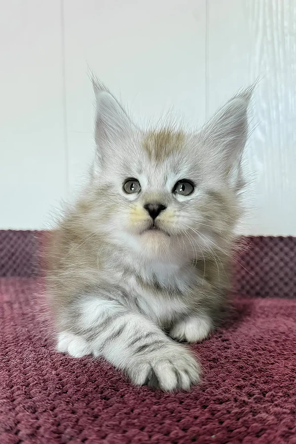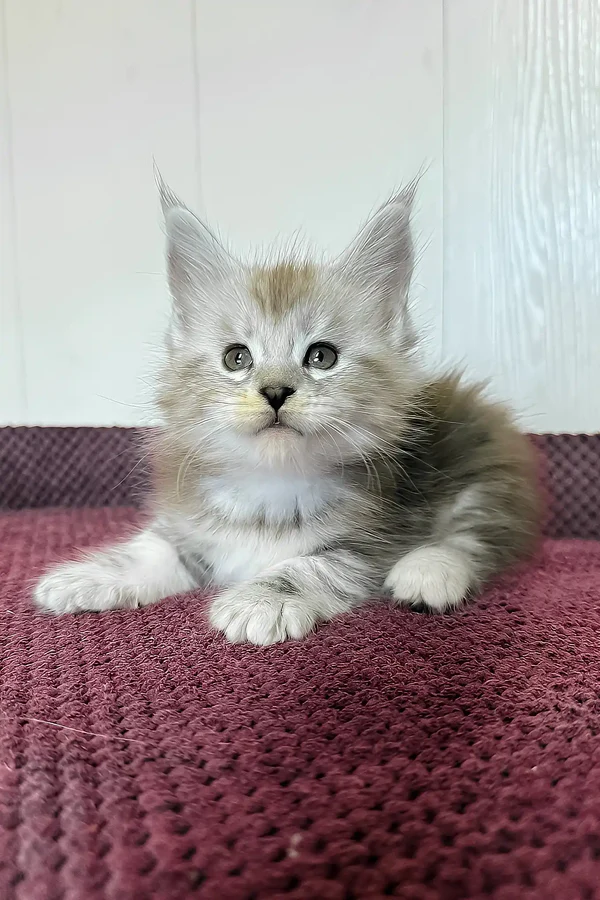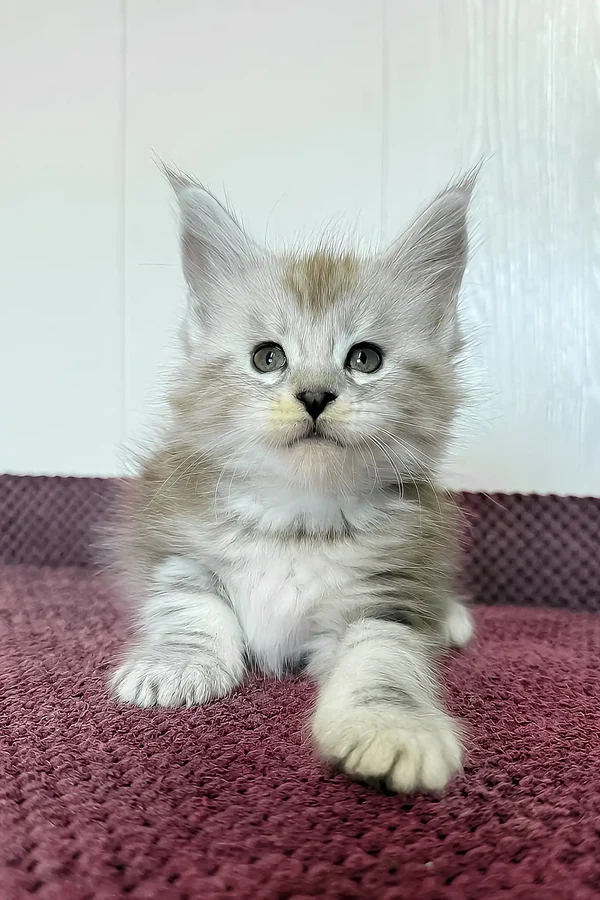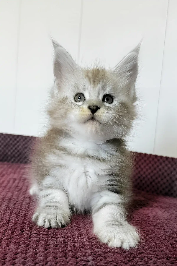 Wonderful future companion. I’m Milanija, a 6 weeks old female Maine coon kitten, wrapped in a soft blue smoke blotched tabby coat that shimmers like morning mist. My yellow eyes hold a gentle intelligence, ready to connect with you and bring warmth to your home. I come from rare bloodlines that reflect the best of my breed—large, elegant, and full of personality. When I grow up, I’ll weigh around 13-18 lbs, carrying my bushy, plume-like tail with pride and wrapped in thick, water-resistant fur that helps me enjoy outdoor adventures safely.