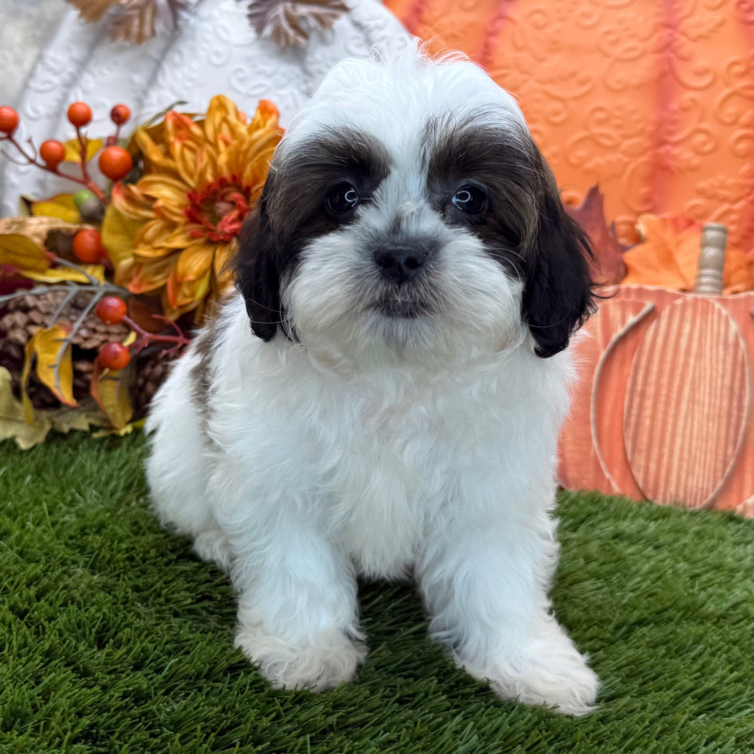 I'm a 9-week-old female Shih-Poo. My dad is a Poodle and my mom is a Shih Tzu. I have a beautiful brindle & white coat, and I was born on September 7, which makes me a Virgo pup. I am ready now to plan my trip to my forever family. Once I reach my adult size, I'm expected to weigh between 8–9 lbs. I'm ready to be your forever cuddle companion.