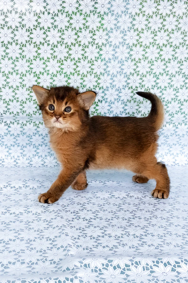 I’m affectionate, active, playful, and very people-oriented — the kind of companion who learns your routines and joins them with cheerful focus. I’m litter-box and scratching-post trained, polite with my paws, and quick to pick up new games. Brush me a couple of times a week (Somali coats love a gentle comb, especially around the ruff and tail), keep my nails tidy, and offer two or three short play sessions daily to satisfy my bright Aby-Somali brain. I’ll repay you with soft trills, shoulder perches, and a steady purr whenever you sit.