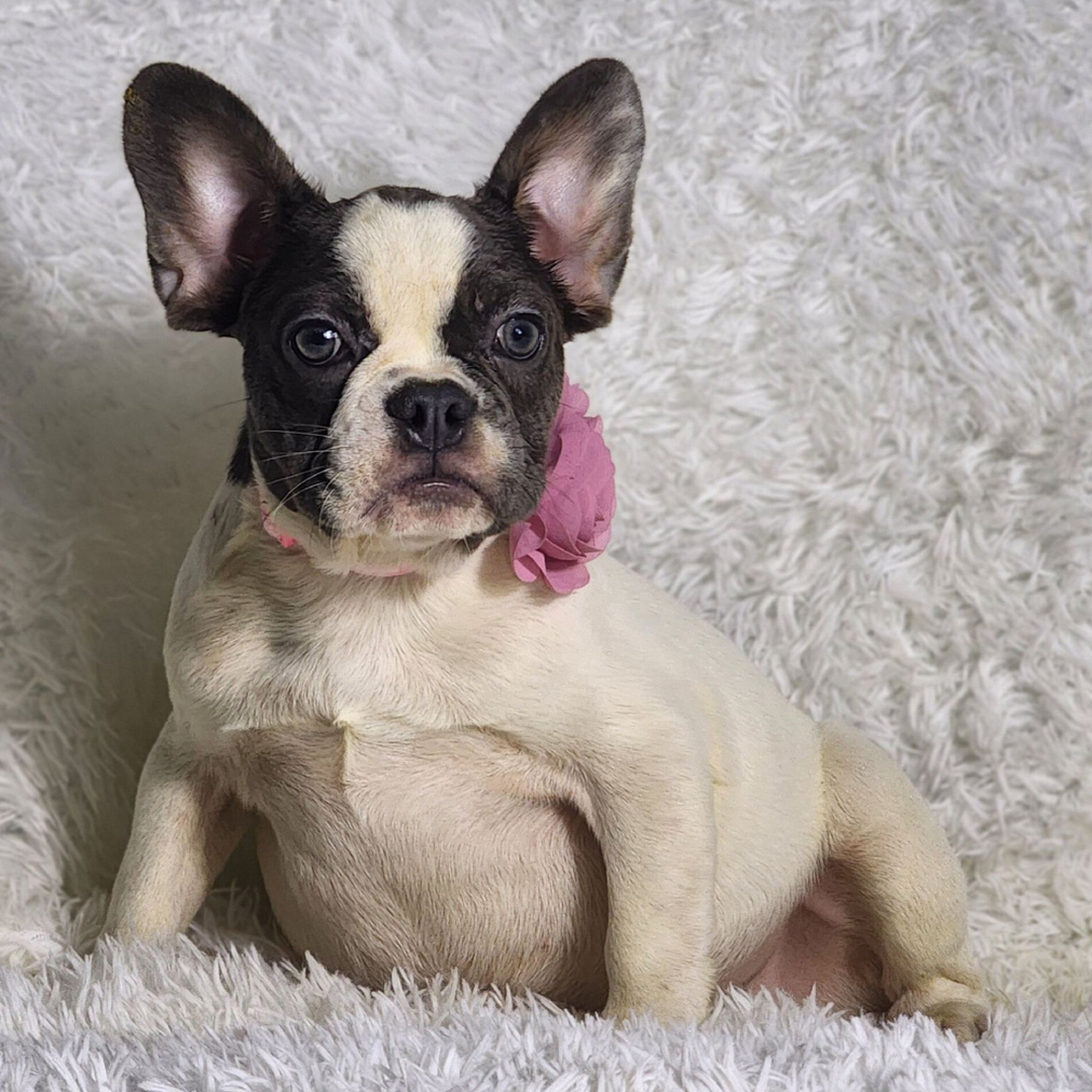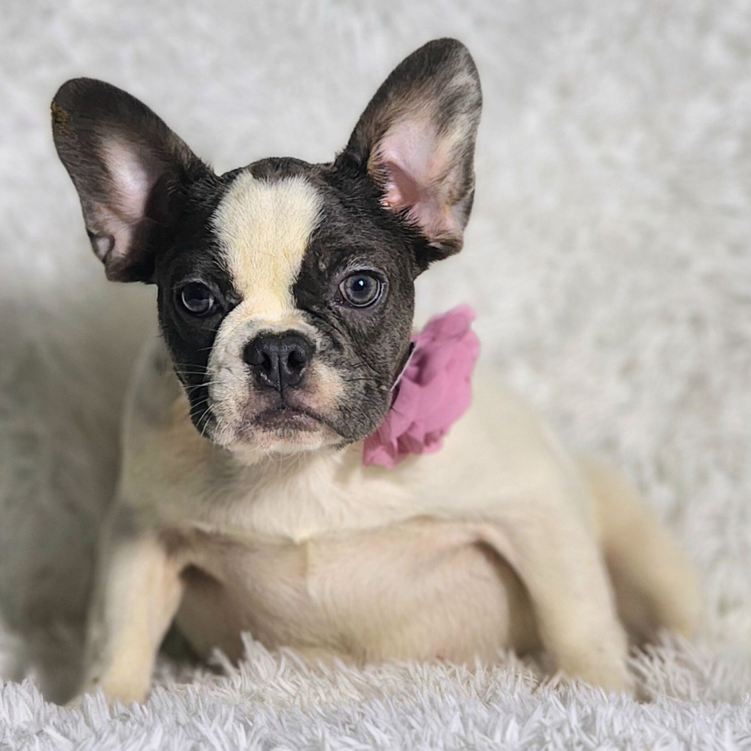 Hi, I'm Rocita! I'm a 23-week-old female French Bulldog with a beautiful blue & white coat, born on February 12, which makes me an Aquarius pup. I am ready now to plan my trip to my forever family. Once I reach my adult size, I'm expected to weigh between 16–22 lbs. I'm AKC registered. I'm all ready to be your new best friend and bring joy to your days.