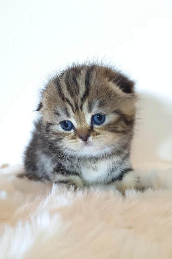 I come from Nataly’s WCF-registered breeding program, known for raising well-socialized kittens with sweet temperaments and proper structure. Every kitten grows up surrounded by human care and love, ensuring we leave home confident, healthy, and ready to adapt to new families. I’m sold only as a pet and will come fixed before adoption — ready to become someone’s devoted little companion. Imagine a fluffy Fold with bright orange eyes, watching the window and dreaming of you. One happy purr and cozy cuddle at a time—I’m ready to be yours.