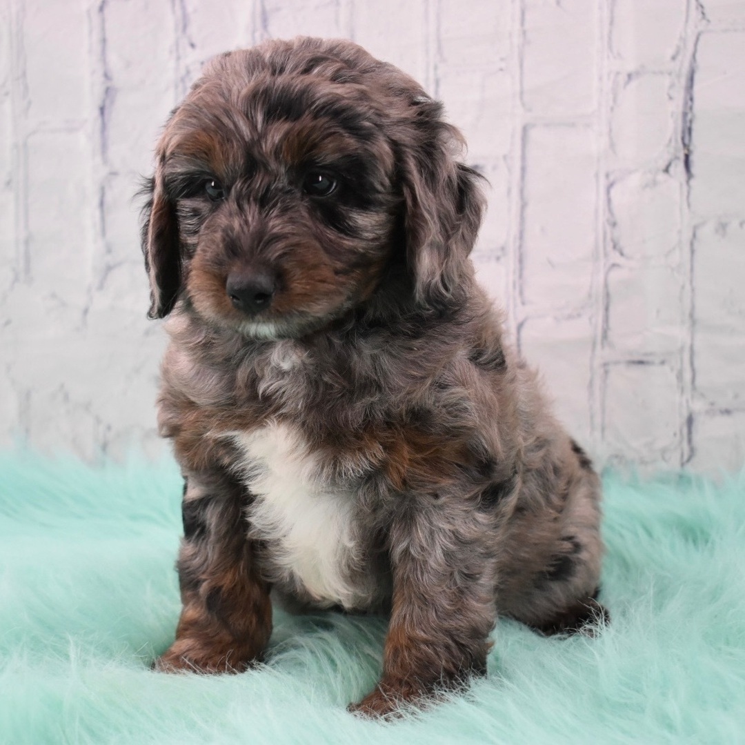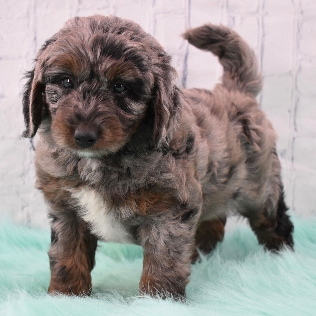 Hi, I'm Rudy! I'm an 8-week-old male Labradoodle with a beautiful blue merle coat, born on May 26, which makes me a Gemini pup. I am ready now to plan my trip to my forever family. I can't wait to fill your home with snuggles and tail wags.