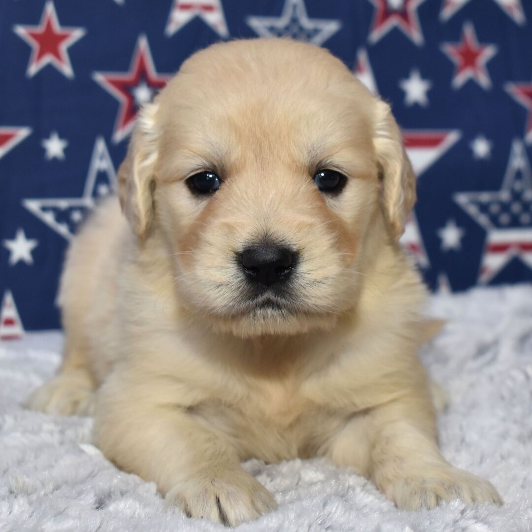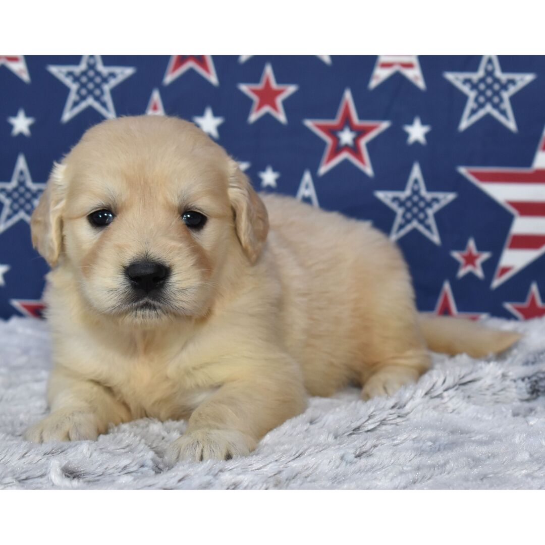 I'm a 5-week-old female Golden Retriever with a beautiful light golden coat, born on May 28, which makes me a Gemini sign. I'll be ready to go home to my forever family after July 26, once I'm grown enough to leave my litter. When I reach my adult size, I should weigh between 45–75 lbs. I'm AKC registered. My paws are ready to pitter-patter through your home and heart.