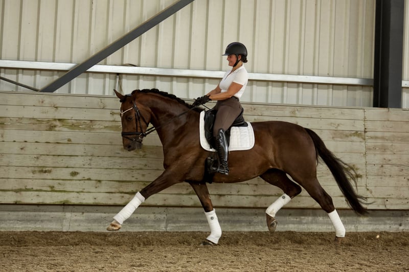 Ridden and presented by an amateur, Seraphina is now confidently progressing toward M-level tests. She is forgiving, comfortable to sit, and also suitable for less experienced riders. In everyday handling, she is gentle and uncomplicated, hacking out alone or in company with ease.
