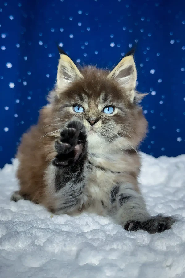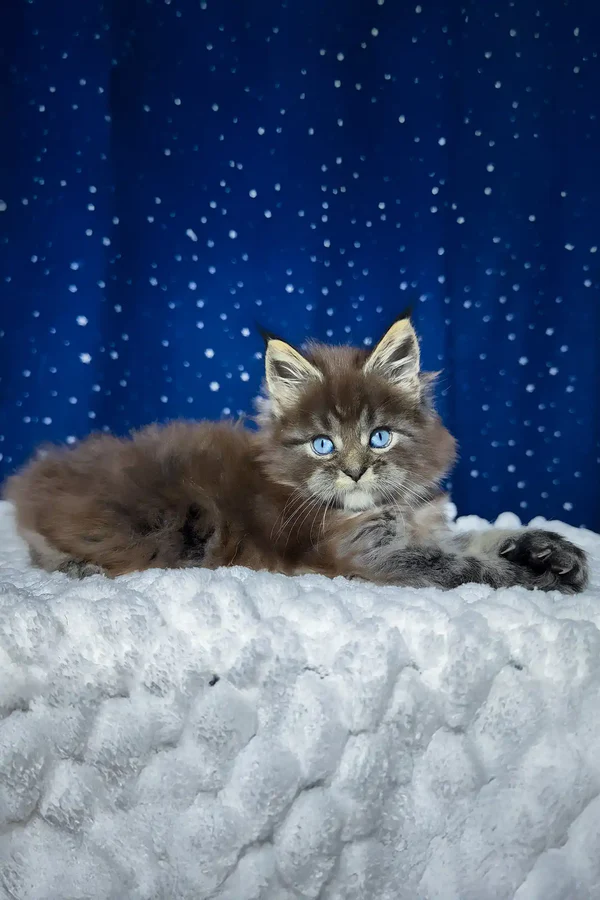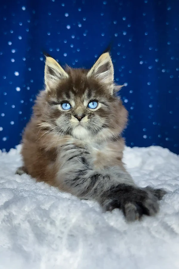 My future human. My name is Set, and I’m not your average kitten—I’m a breathtaking male Maine coon kitten with a striking black smoke blotched tabby coat accented by soft white, and the most mesmerizing icy-blue eyes you’ve ever seen. I'm just 6 weeks old now, but already full of personality and charm. My ears are tipped like a little lynx, and they twitch whenever you call my name. I’m playful, sociable, and affectionate—everything you’d want in a purebred companion who’s born to bring joy into your life. I love to purr when I’m close to you, and I can't wait to curl up in your arms for our first cuddle.