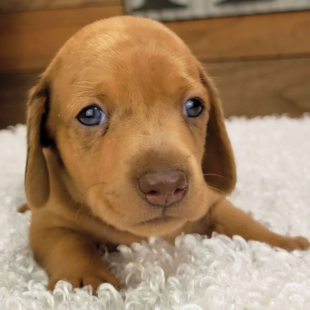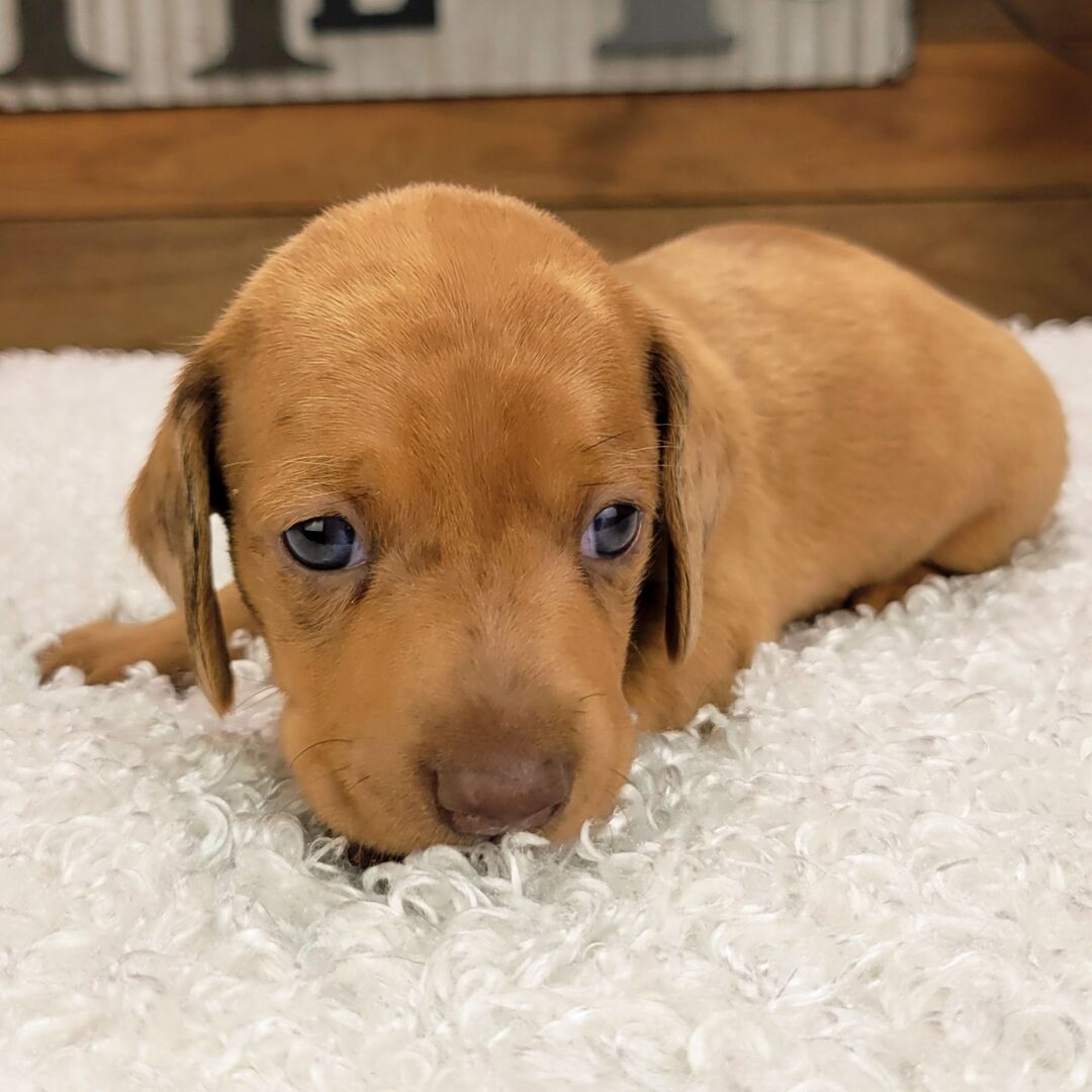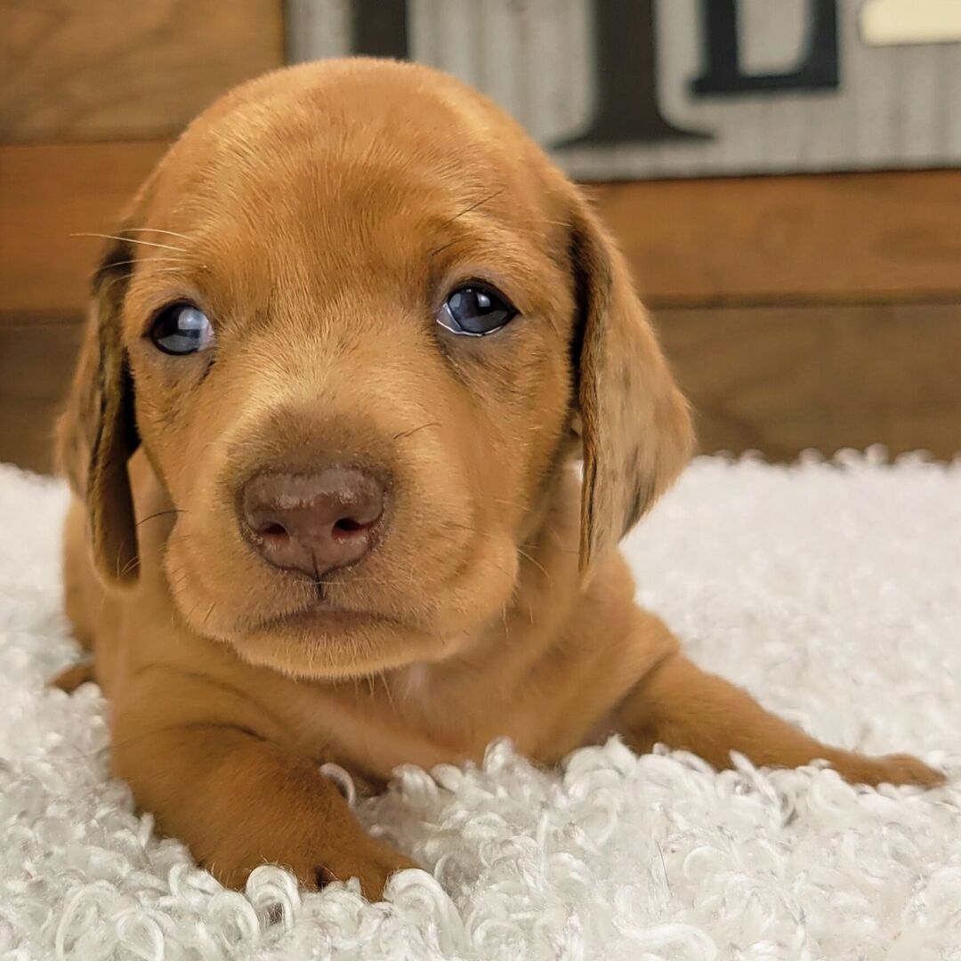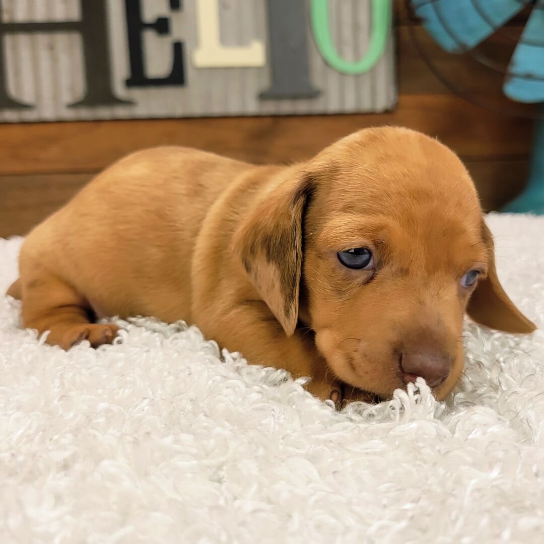 I'm a 5-week-old male Dachshund with a beautiful red dapple coat, born on June 1, which makes me a Gemini sign. I'll be ready to go home to my forever family after July 31, once I'm grown enough to leave my litter. I'm UABR registered. I can't wait to share my love and playful energy with you.