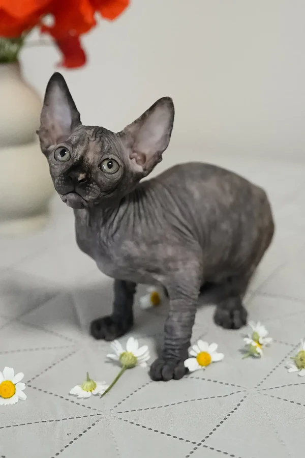 I’m Una—and if you’ve been dreaming of a kitten who’s equal parts elegance, charm, and curiosity, your search might just end with me. I’m an 8 weeks old Canadian Sphynx kitten girl with a striking tortoise point coat that highlights every graceful move I make. My large, expressive green eyes are always observing with calm curiosity, and my long tail adds a unique flair to my already unforgettable look. I may not have fur like other kittens, but my vibrant skin tones, warm to the touch, are part of what makes me so exotic and special.